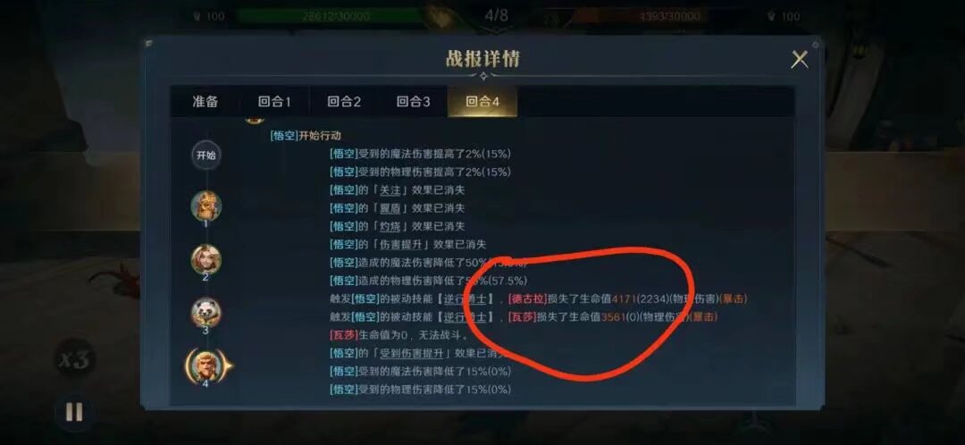 该队伍可以很好的克制吸血鬼队,因为吸血鬼队的减伤一般都是前三回合,而第四回合就是悟空的爆发回合,在各种增伤技能的加持下,【逆行勇士】大概率可以直接秒掉瓦莎,而对阵吸血鬼队,只要秒掉瓦莎就相当于赢了一半!
