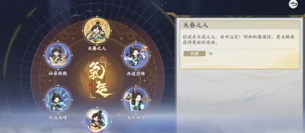 在开局的时候挑选天赋还是比较重要的,建议选择天眷之人和丹道宗师。天眷之人可以给后续的发展带来很多的优势,能够起到辅助的作用。丹道宗师则可以轻松的解锁炼丹的玩法,这就是获取资源的关键,想更进一步的话,那别忘记还需要去选择有资质的灵脉五道。