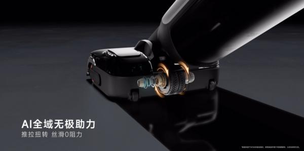 洗地机的助力技术长期停留在单向推拉辅助阶段,而M50 Ultra的AI全域无极助力通过航天级AI运动控制算法,实现了对用户操作意图的预判。其助力轮模块,通过算法实时感知,全向闪速调节可实时感知推拉、扭转的力度与方向,并实时分析和调整。例如,用户向左转弯时,算法提前补偿右侧轮组扭矩,消除传统洗地机的“惯性偏移”;面对不同地板的阻力差异,自动切换助力强度,确保全程“零手感差异”。这种“人机共融”的决策模式,让机器从被动响应升级为主动协同。