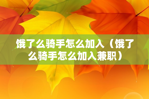 饿了么骑手怎么加入(饿了么骑手怎么加入兼职)