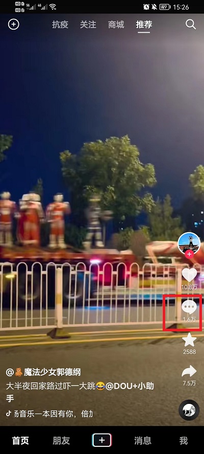 1、打开抖音,进入到视频播放界面,在界面中点击【评论】;