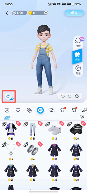 3、在换装页面,点击角色左下角的【性别】,更换当前性别即可切换角色性别;