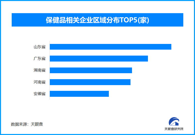 从区域分布来看,山东省、广东省、湖南省保健品相关企业数量位居前列,分别为超过93万余家、75.1万余家和63万余家。