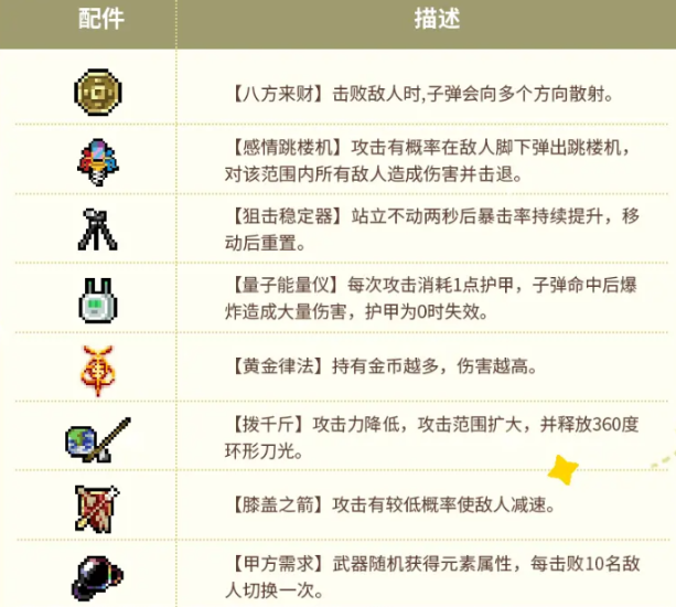 5、与铁匠交互可获得配件,每把武器都可同时装配两个配件。