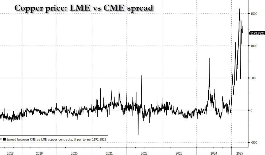 这种交易如此受欢迎,以至于潜在的空头挤压正在出现。摩科瑞的金属和矿业主管科斯塔斯•宾塔斯(Kostas Bintas),一些此前在COMEX大量抛售铜的贸易商一直在紧急设法向美国增购铜,以便在任何新关税出台之前弥补空头头寸。这就解释了为什么会出现恐慌性地将实物运往美国的情况,因为如果他们不能“获得更多的铜”,铜价就会直线上涨。