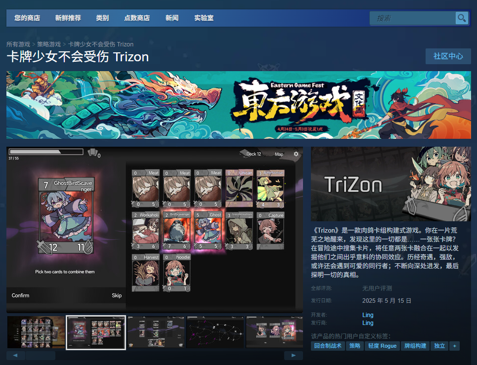 Steam平台需要先安装Steam平台,之后注册一个账号登录,然后搜索“卡牌少女不会受伤 Trizon”进入商店购买页面。