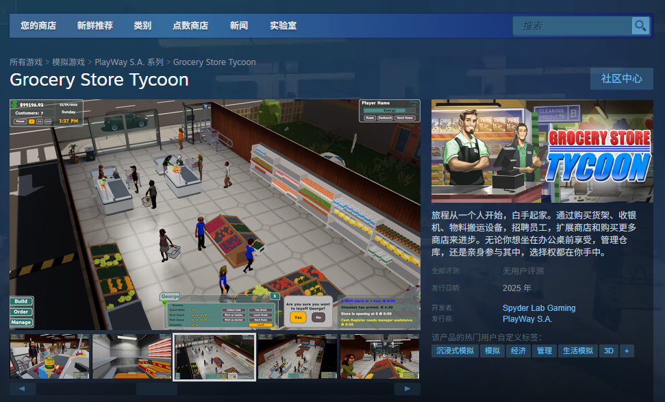 可以去Steam平台下载,地址是:https://store.steampowered.com/app/2870330/Grocery_Store_Tycoon/。