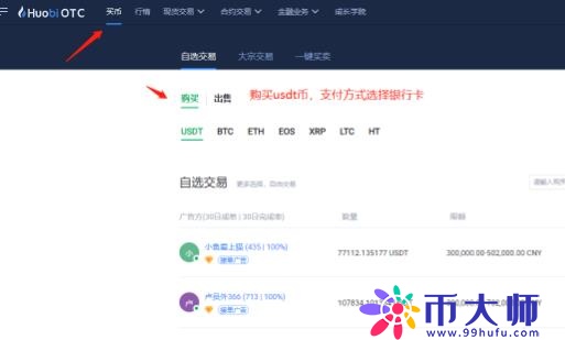2、买币(usdt币),法币账户的币划转到币币账户。