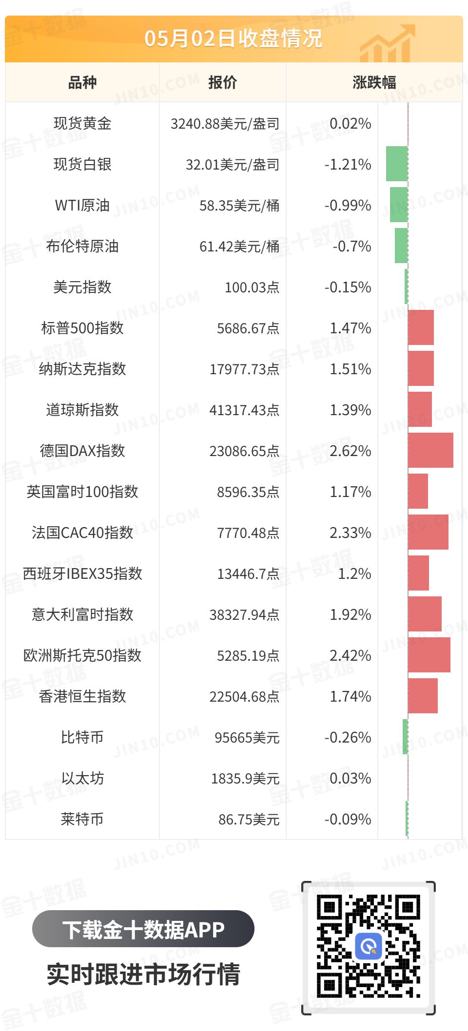 欧股抹去特朗普关税日以来的所有跌幅,英国股市创历史上最长连涨天数。德国DAX30指数上周五收涨2.62%,英国富时100指数收涨1.17%,法国CAC40指数收涨2.33%,欧洲斯托克50指数收涨2.42%,西班牙IBEX35指数收涨1.20%,意大利富时MIB指数收涨1.92%。