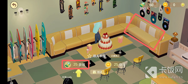 4、在家具店中,移动角色到想要购买的家具前,直接点击家具可以弹出购买窗口,选择【获得】;