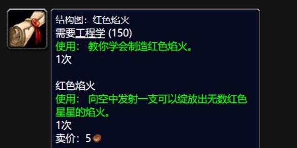 1、红色焰火是魔兽世界中的一个烟花类型的工程学图纸。