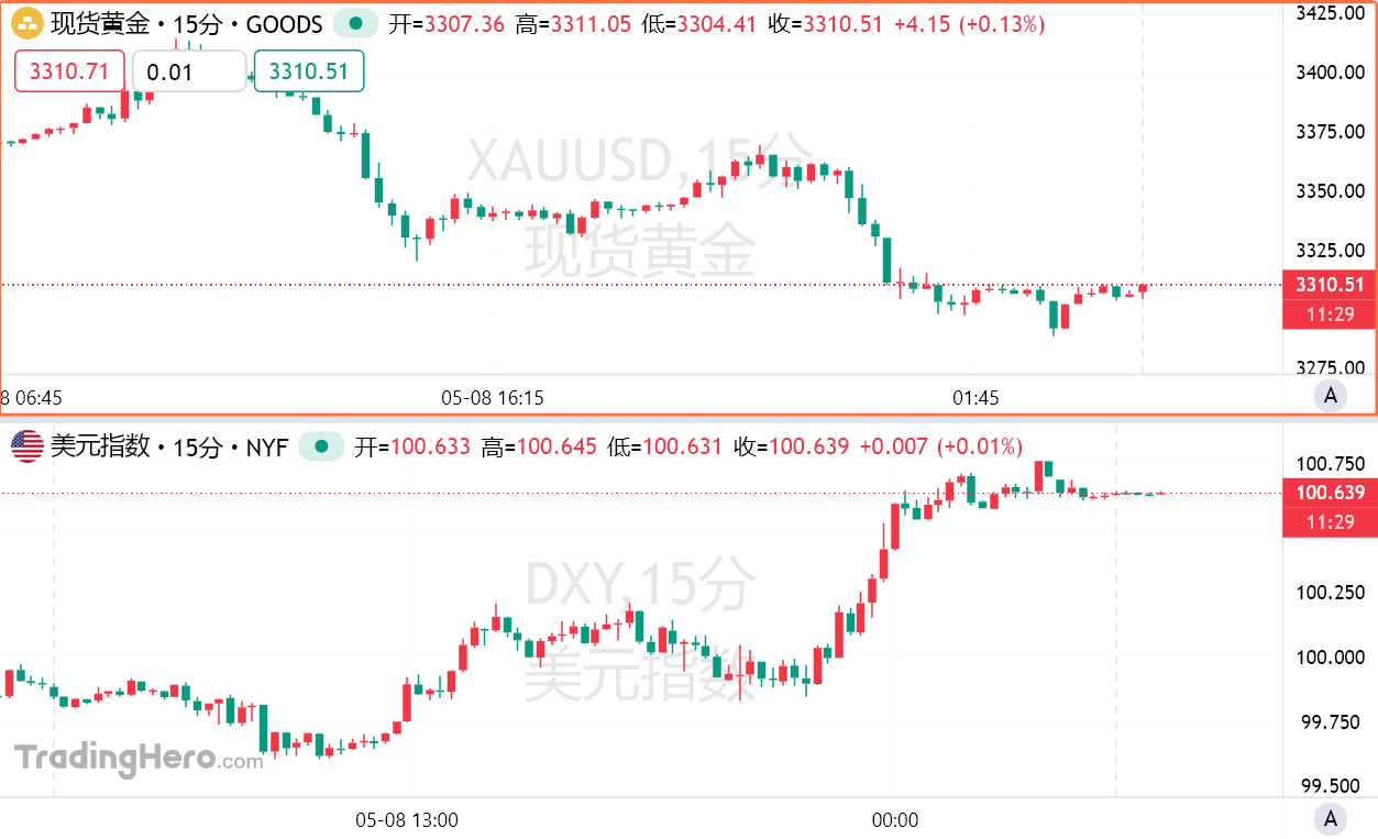 美元涨势扩大,削弱了因担心全球贸易战而产生的避险需求,黄金因此下滑。现货黄金隔夜一度跌破3300关口,跌幅近2%。在特朗普敦促投资者“现在就出去买股票”之后,美国股市跃升至盘中高点。
