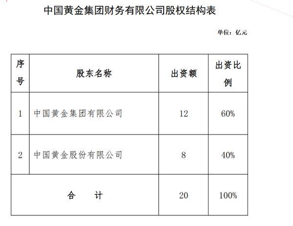 上述增加注册资本并调整股权结构后,中国黄金集团财务公司的股东构成、出资金额及出资比例如下: