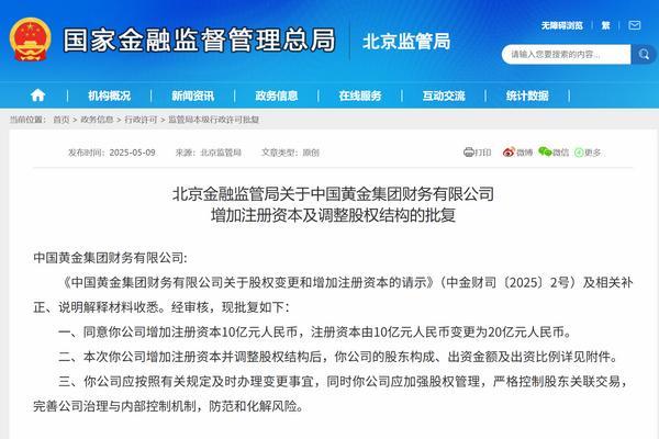 中国黄金集团财务公司增资获批 注册资本变更为20亿元