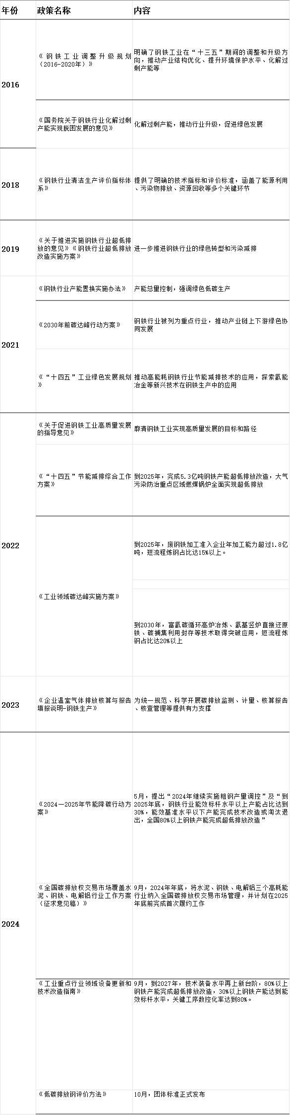 表 1-1 我国绿色钢铁转型相关政策