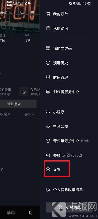 1、在抖音中的个人界面,点击右上角的【三】打开扩展界面;