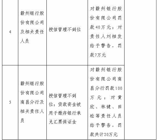 赣州银行及旗下南昌分行合计被罚140万元:因授信管理不到位等