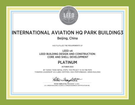 据新航城公司负责人介绍,总部园项目响应北京市花园城市建设工作部署,践行绿色低碳发展理念,对标LEED铂金级、WELL金级、绿建三星等国际国内绿建认证标准建设,满足《绿色建筑评价标准》要求。部分楼座节能率超一般绿建项目近22%,预计每年可节约标煤近百吨、减少碳排放近300吨。与此同时,“水晶眼”作为国内首个采用轻钢骨架和节能玻璃组合的建筑幕墙应用,对比普通玻璃幕墙透光率可提升约10%,可有效减少项目冬季采暖及夏季空调能耗,实现通透性与节能性的平衡。