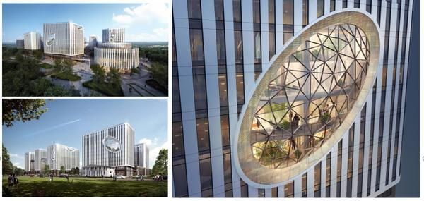 据了解,“水晶眼”设计灵感契合大兴国际机场作为国际枢纽的开放属性与北京南中轴线的深厚文化底蕴,源自“天圆地方”的传统理念与航天器舷窗的科技视角,象征着人文与科技的交融。国际航空总部园共设有15个“水晶眼”,其中位于1号楼的“水晶眼”横跨五层楼,面积达230平方米,约13米挑高空间,面对复杂造型与超大跨度的设计施工挑战,项目团队通过数字技术生成数万组精准部件数据,树立了国内异形建筑设计与施工的新标杆。加工阶段采用数控激光切割和全自动焊接技术完成骨架高精度拼接,刷新了国内曲面幕墙工艺水平。吊装环节则凭借毫米级激光定位装配技术,实现数字模型与实体的100%还原。此外凭借“水晶眼”的独特设计功能,还将为入驻企业用户提供远眺大兴机场与中央公园的独特视野及跨越楼层的共享空间,打破了传统办公空间的局限性,营造出全新的商务社交场景。