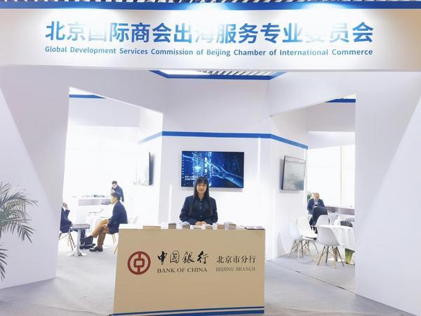 本次京洽会上,中行北京分行作为北京国际商会出海专业委员会发起单位联合设立出海服务专业委员会咨询站台,现场为参与京洽会的企业介绍中国银行出海特色金融服务。