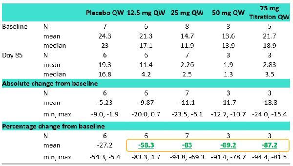 表:基线>8%的受试者在接受12周治疗后LFC的变化(通过MRI-PDFF评估