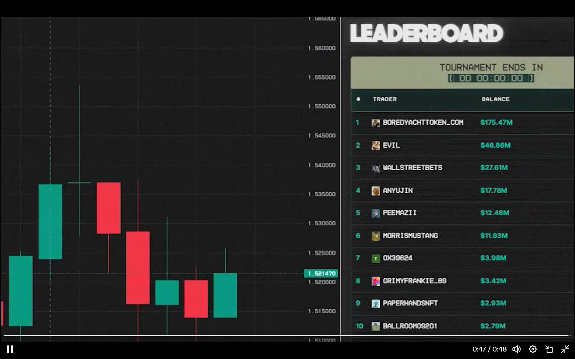 10月22日凌晨1点10分,Top Trader官方宣布@boredyachtToken赢得了Top Trader首届每日锦标赛的第一名。随着锦标赛倒计时结束,@boredyachttoken 的结余(Balance)上有1.75亿美元,遥遥领先第二位的4686万美元的Evil,第三名为WallstreetBets的2761万美元。