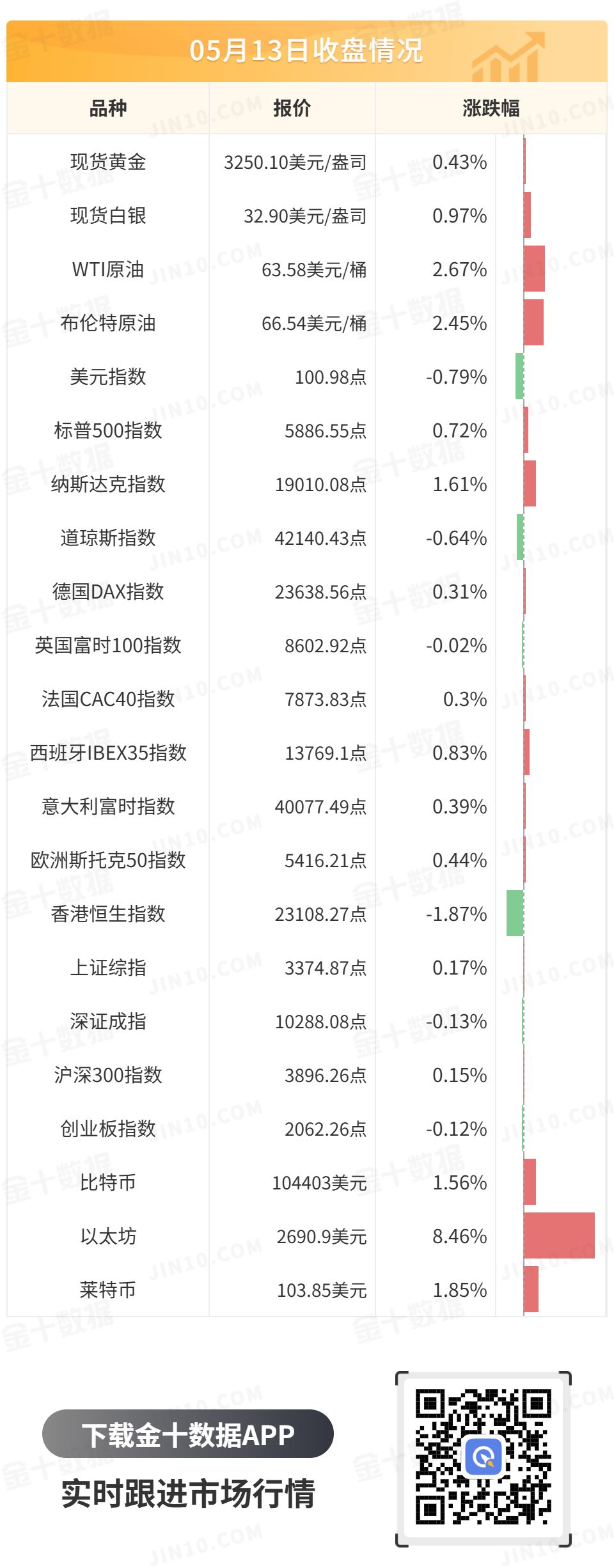 受CPI数据刺激,现货黄金收复3250关口,最终收涨0.43%,报3250.10美元/盎司。现货白银最终收涨0.97%,报32.90美元/盎司。