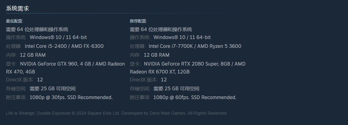 以上就是小编为大家准备的关于奇异人生双重曝光pc配置要求的全部内容了,希望对大家有帮助。
