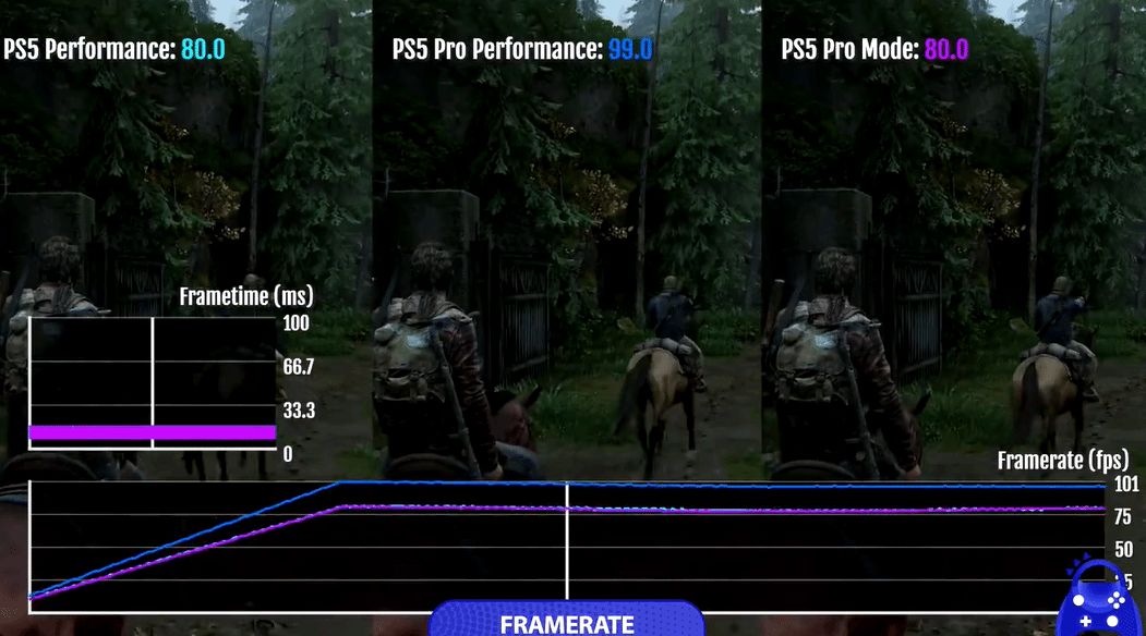 借助VRR(可变刷新率),Pro版游戏性能模式平均超过100帧,在保真模式下实现接近60 fps,与PS5相比提高了15/20 fps。