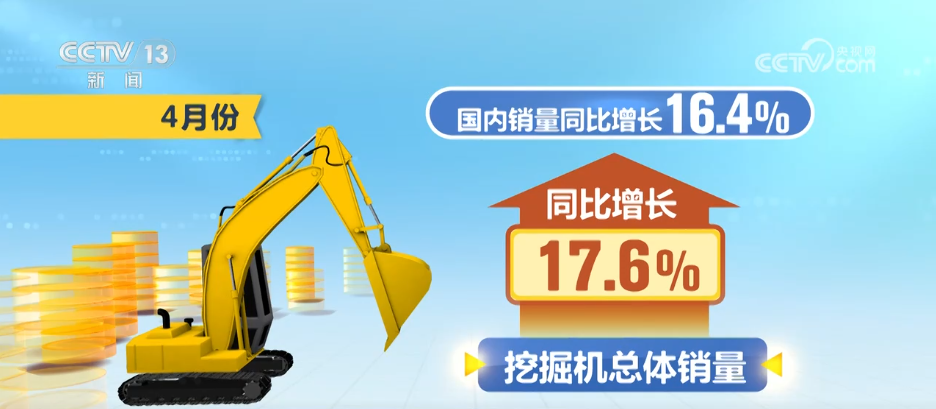 最新数据显示,4月份,挖掘机总体销量同比增长17.6%,其中国内销量同比增长16.4%。今年以来,挖掘机销量持续回升,反映出工程机械行业逐渐复苏和内需反弹的积极信号。国家信息中心最新数据显示,4月份,全国工程机械开工率环比增长了1.6个百分点,各地工程建设更加繁忙,其中路面设备表现突出。专家表示,道路基建正在全面升温,这既是季节性因素与政策发力的共同结果,也反映出中国经济逐步释放内生动能的趋势。稳增长政策正在转化为实物工作量,经济修复的“抓手”逐步显效。