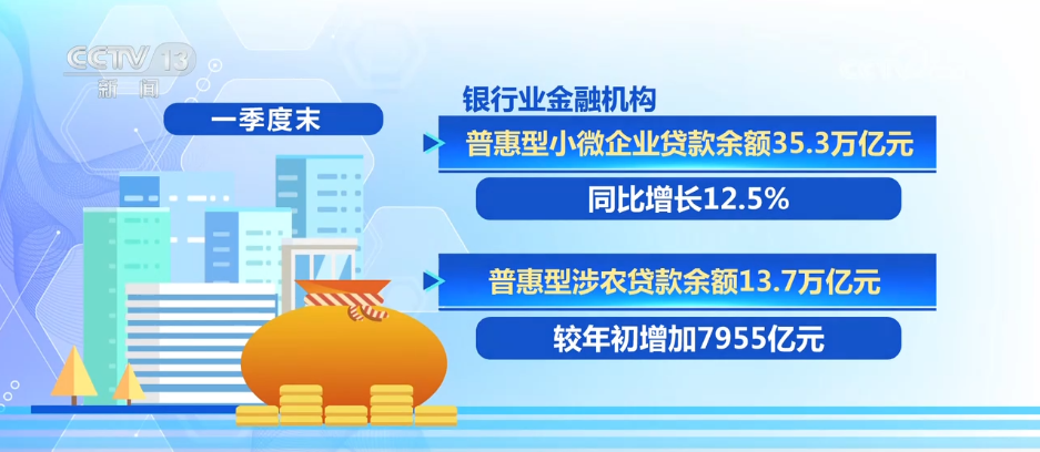 一季度末,银行业金融机构普惠型小微企业贷款余额35.3万亿元,同比增长12.5%;普惠型涉农贷款余额13.7万亿元,较年初增加7955亿元;一季度,保险公司原保险保费收入2.2万亿元,同比增长0.8%;赔款与给付支出8274亿元,同比增长12.2%;新增保单件数249亿件,同比增长20.7%。