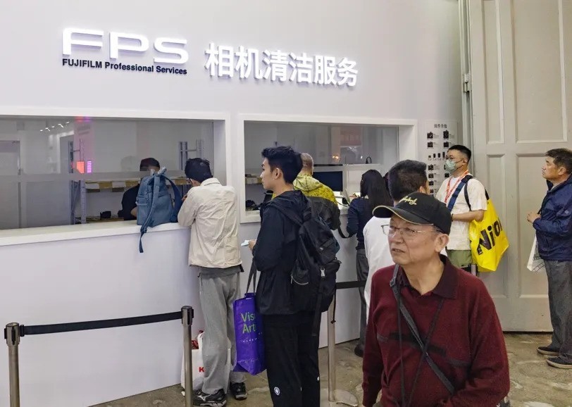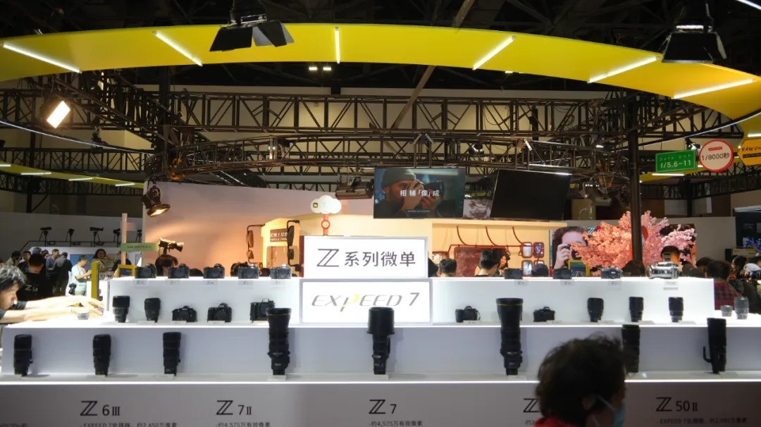 展台为观众搭建了多个体验环节,其中包括弱光高感光度体验区、视频体验区、相机清洁区等。