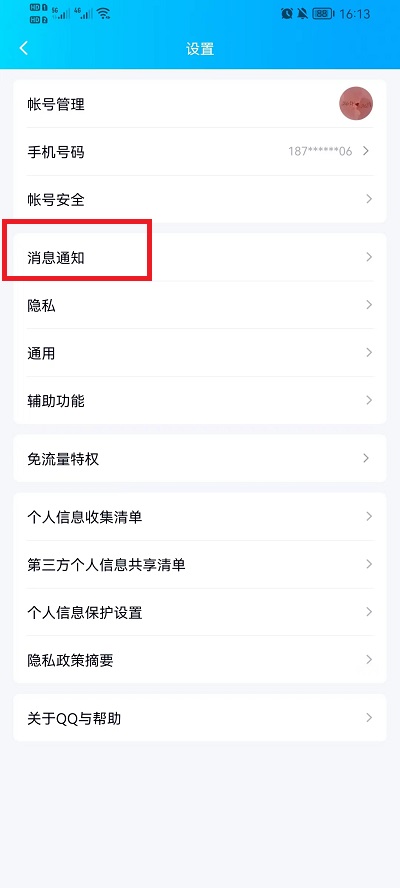3、在设置功能就可以看到【消息通知】功能,进入到其中;