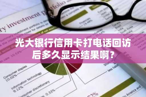 光大银行信用卡打电话回访后,审批通过的可能性非常大,通常1-2工作日即可出结果,就可以查询了。如果审核没问题的话,一般就会制作卡片了,两个工作日只能完成卡片的制作,然后会以挂号信的方式邮寄给你,大概一到两周左右就到你手上了。