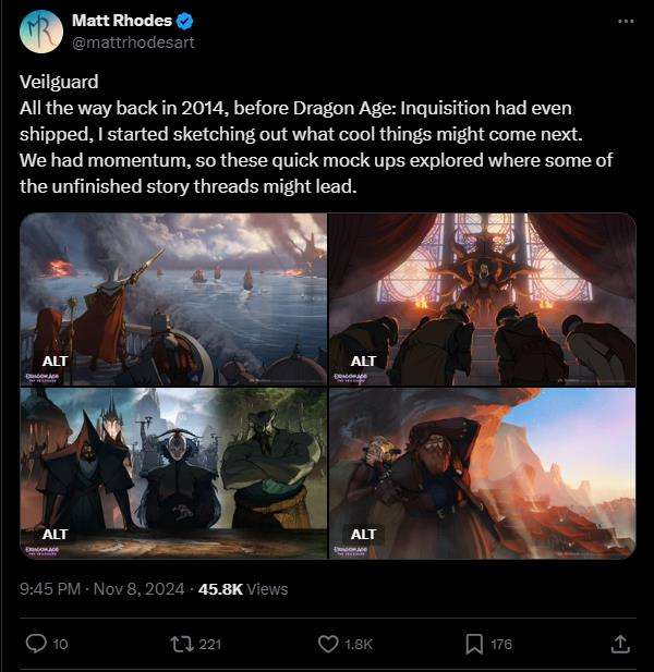 Rhodes分享的原画与《龙腾世纪:影幛守护者》的艺术风格存在明显差异,引发部分玩家的抱怨,认为这些原画过于优美,反而是在提醒玩家《龙腾世纪:影幛守护者》本来该呈现什么样的效果。