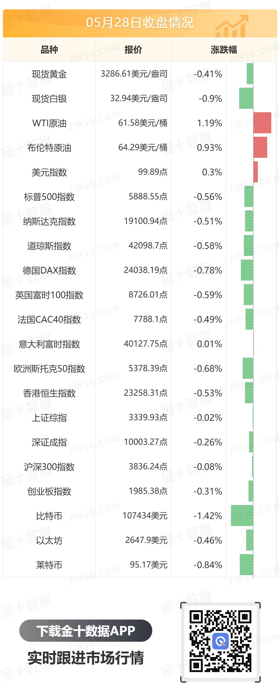 现货黄金日内走势反复,其在欧盘时段一度重回3320关口上方,但在美盘前回吐日内所有涨幅并转跌,一度跌破3280美元,最终收跌0.41%,报3286.61美元/盎司。现货白银收跌0.9%,报32.94美元/盎司。