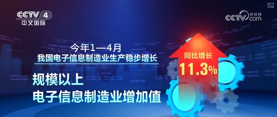最新统计数据显示,2025年1—4月,中国电子信息制造业生产稳步增长,规模以上电子信息制造业增加值同比增长11.3%。前4个月,规模以上电子信息制造业营业收入和利润都实现两位数增长,固定资产投资同比增长9%。