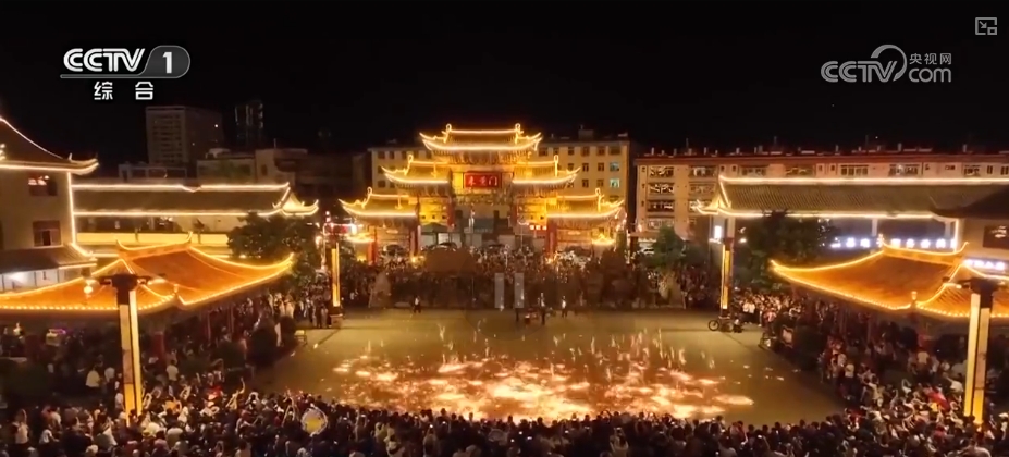 在新疆喀什古城,华灯初上,1000架无人机腾空而起,在夜空中变幻出各种绚丽的造型图案,吸引来自天南海北的游客驻足观赏。