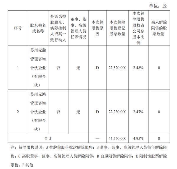 财经6月6日讯 今日,创元期货(证券代码:832280发布相关公告称,将有44,550,000股公司股票解除限售,占公司总股本4.95%,可交易时间为2025年6月10日。本次股票解除限售的明细情况及原因如下: