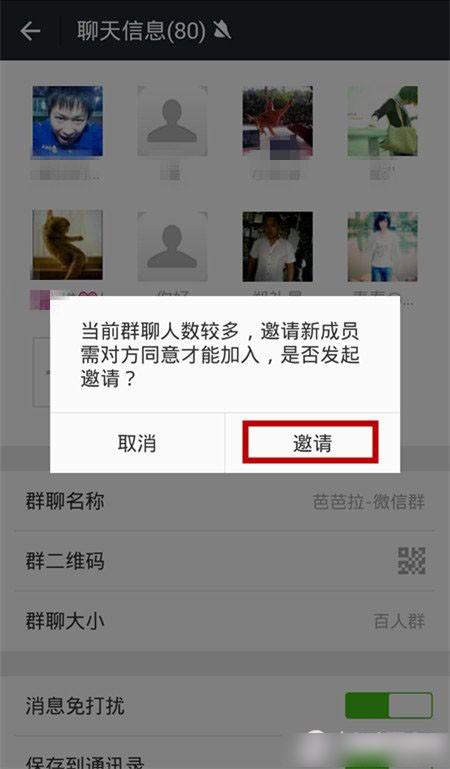 第六步、如果群聊人数较多,将会出现如下图画面,我们点击“邀请”即可。