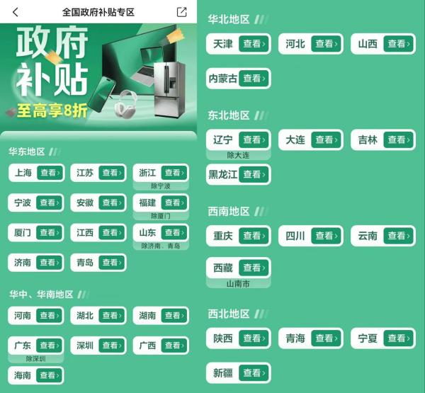 云闪付App“全国政府补贴专区”页面