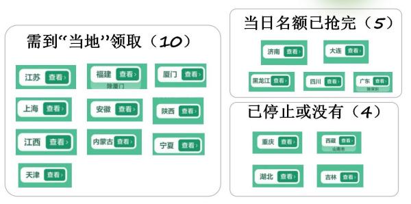 6月9日下午,中新经纬于北京使用手机点击进入云闪付“全国政府补贴专区”,经测试发现,其中有10个省、市需要IP在当地才可领取(详细情况如下图,而黑龙江、四川、大连、济南、广东(广州领取家电线上“国补”渠道显示当日名额已领完。