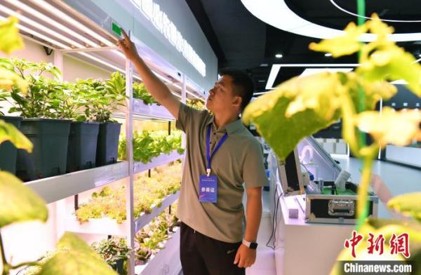 6月10日,智慧农业体验区,参展人员正在调试设备。 中新网记者 韩冰 摄