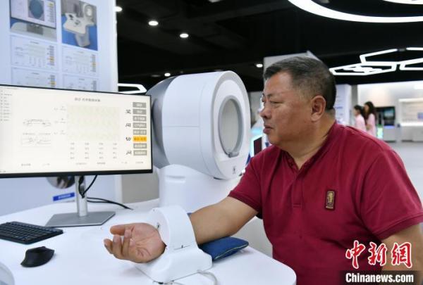 6月10日,参观者现场体验中医AI“望闻问切”。 中新网记者 韩冰 摄
