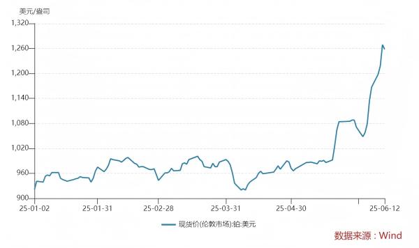 截至6月13日发稿前,现货铂金再创新高,一度触及1305.81美元/盎司,今年以来累计涨逾42%,远超现货黄金30%的涨幅。