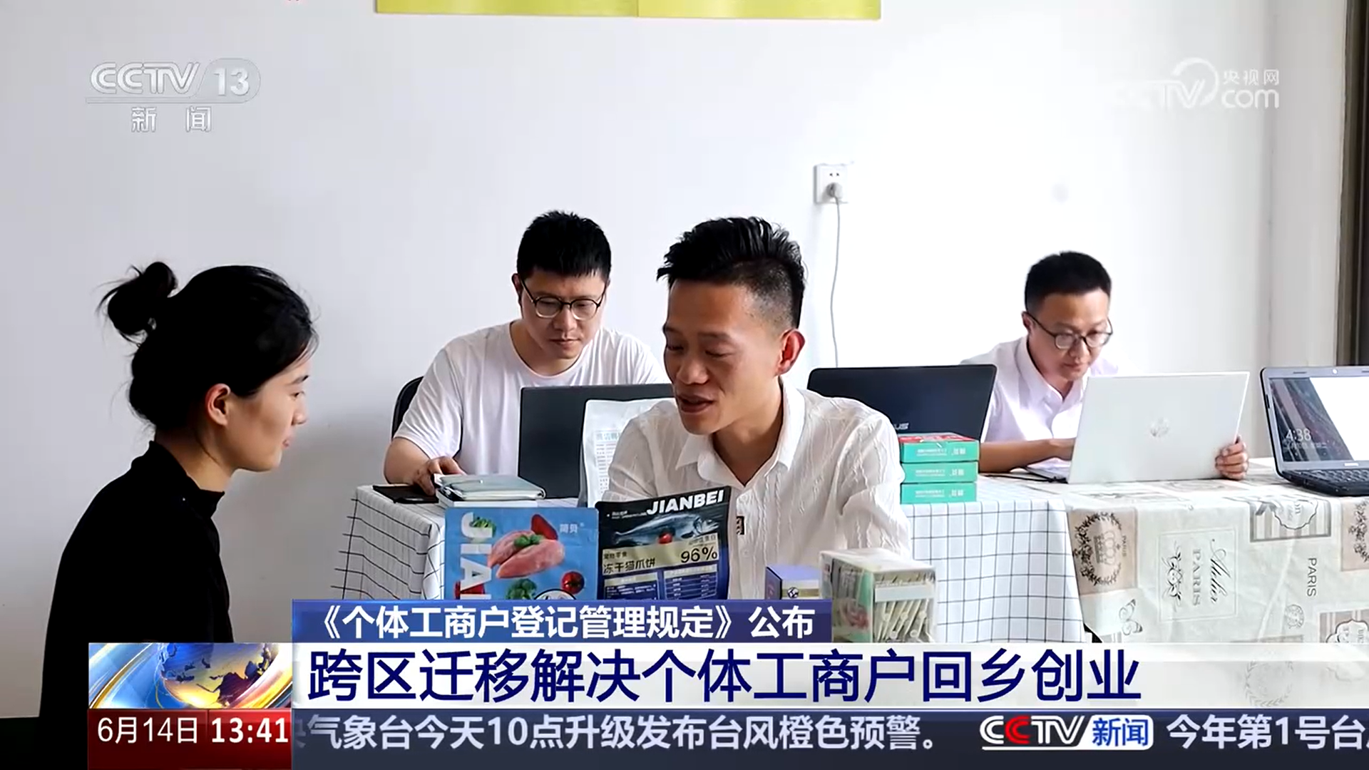 6月14日公布的《个体工商户登记管理规定》完善了登记规则,个体工商户经营场所发生变化时,可以像企业一样办理跨区域迁移,无需迁入迁出两头跑,为个体工商户拓展经营地域提供便利。