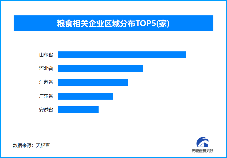 从区域分布来看,山东省、河北省、江苏省粮食相关企业数量位居前列,分别为超过4.2万余家、2.7万余家和2.3万余家。