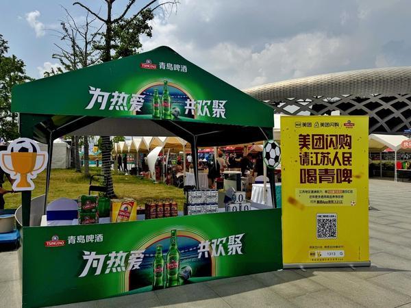 赛场上,青岛啤酒与各大赛区携手奉献精彩赛事;赛场外,青岛啤酒还为球迷打造了专属的观赛礼遇。在赛场外的青岛啤酒品牌形象展示区,球迷们只需扫码便可领取即时零售线上酒券,在美团“苏超闪购赛场”专区,青岛啤酒继续加码优惠券和助力红包,拿着球票到赛场周边的合作餐饮店还能兑换青岛啤酒,畅爽的口感,比视听觉先一步传达着激烈的赛事氛围。