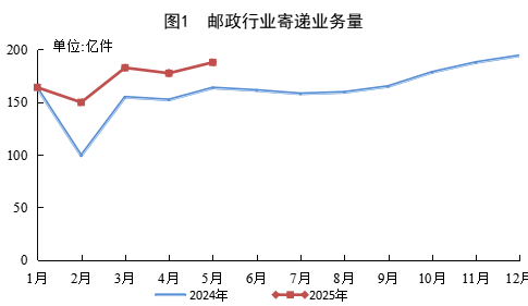 5月份,邮政行业寄递业务量完成187.8亿件,同比增长14.8%。其中,快递业务量完成173.2亿件,同比增长17.2%。