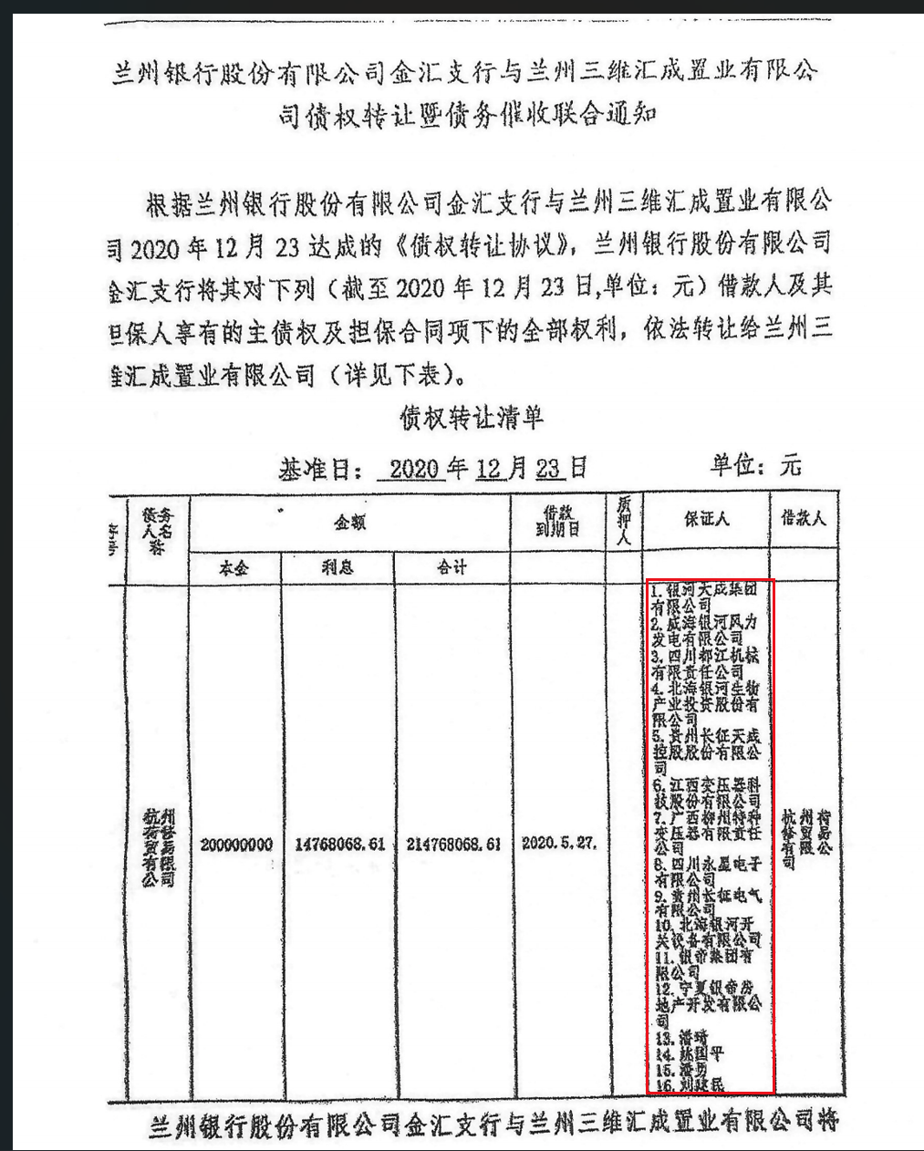 据记者掌握的资料,2020年,兰州银行将与上述11亿元贷款及利息对应的债权原价转让给三维汇成。兰州银行IPO时证监会问询信息显示,2019年,兰州银行另将10.79亿元债权转让给三维汇成子公司云翔典当。